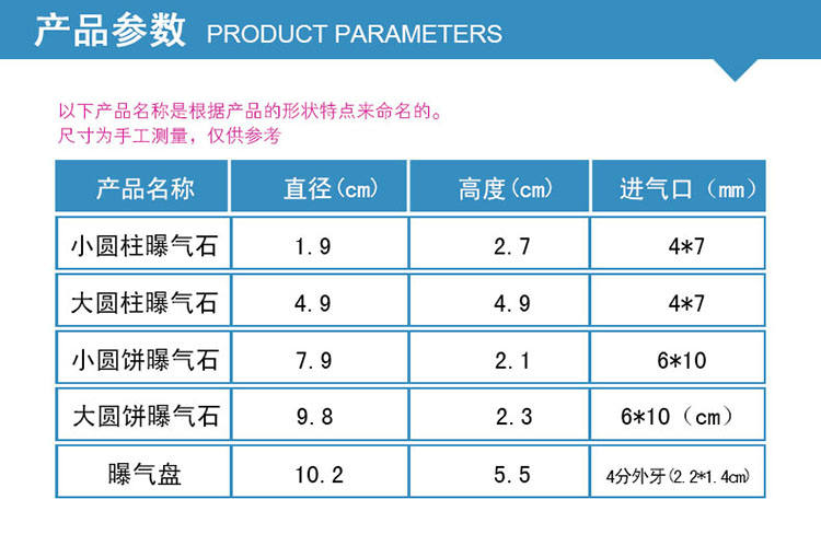 曝氣盤又稱鈦曝氣器或微孔純鈦曝氣器。 球面式規(guī)格如下: 直徑:Φ100mm、Φ150mm、Φ180mm 鈦曝氣器采用國外先進技術(shù)以工業(yè)純鈦粉(純度≥99.6899%)為主要原料,經(jīng)高溫高真空燒結(jié)而成。其結(jié)構(gòu)均勻、微孔孔徑0.22—100μm,孔隙度35%~50%、過濾阻力 小,分離、凈化效率高,機械性能好,球面底直徑100mm~180mm,厚度3mm,曝氣氣泡0.1~2mm,且曝氣阻力小、氣液界 面積大、氣泡擴散均勻,不會產(chǎn)生孔眼阻塞,耐腐蝕性強,比常規(guī)曝氣氣能耗降低40%,增加污水處理量近一倍。 使用壽命長達10年。特別適用于城市污水、大 型用水工廠新建擴建和老曝氣池改造。曝氣頭接口方式有4分口,6分口,可內(nèi)或外螺紋。 應(yīng)用范圍:市政、制藥、化工污水處理,生化池曝氣系統(tǒng);水產(chǎn)養(yǎng)殖、水族館水體增氧等。 |